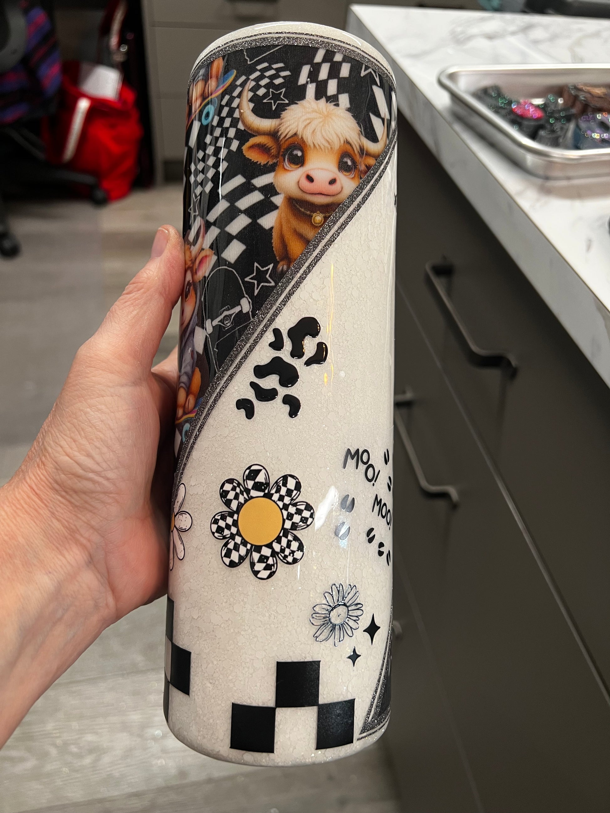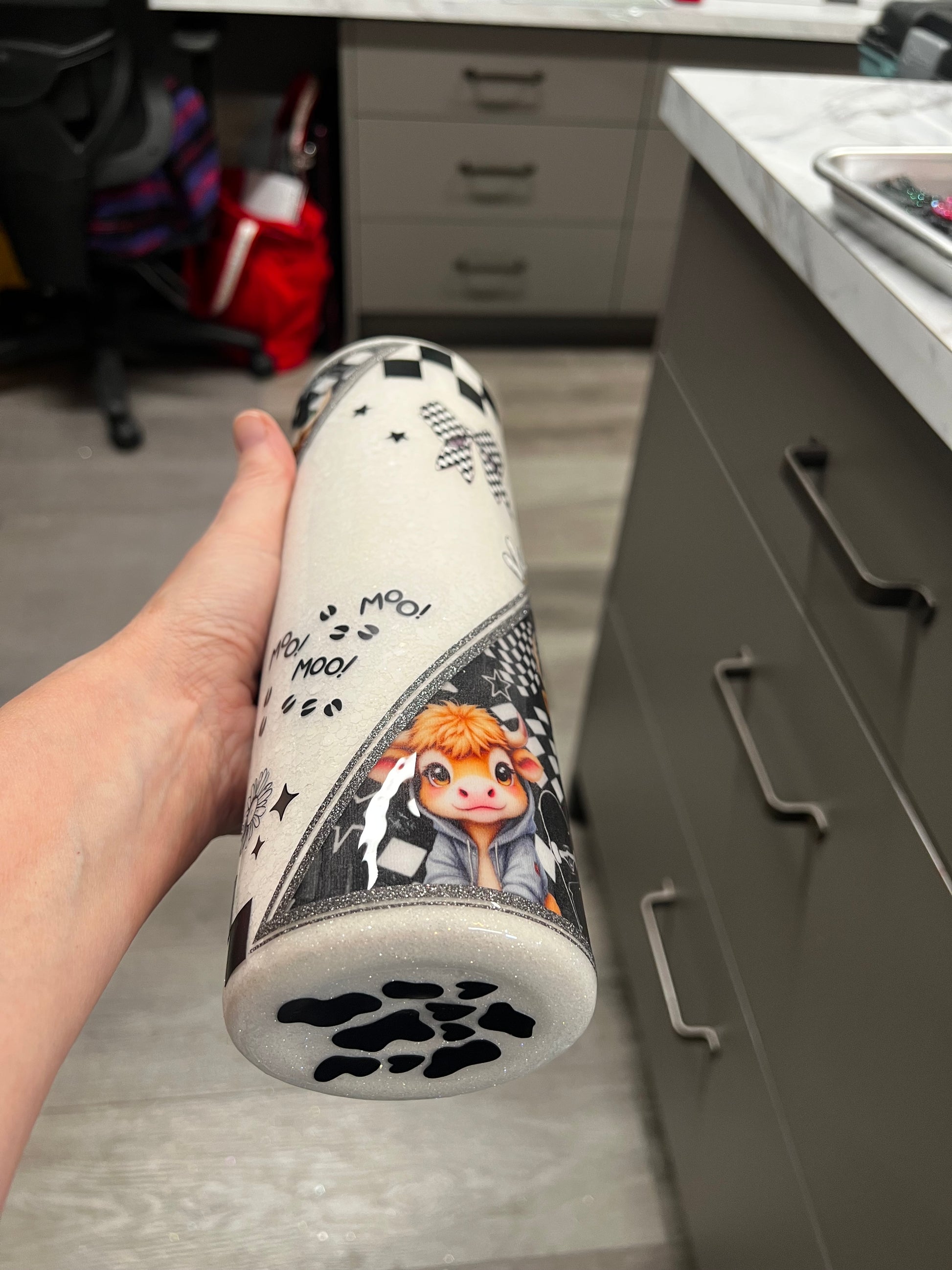This adorable Highland cow tumbler blends attitude with charm in a bold black-and-white design that feels fresh, modern, and effortlessly cool.